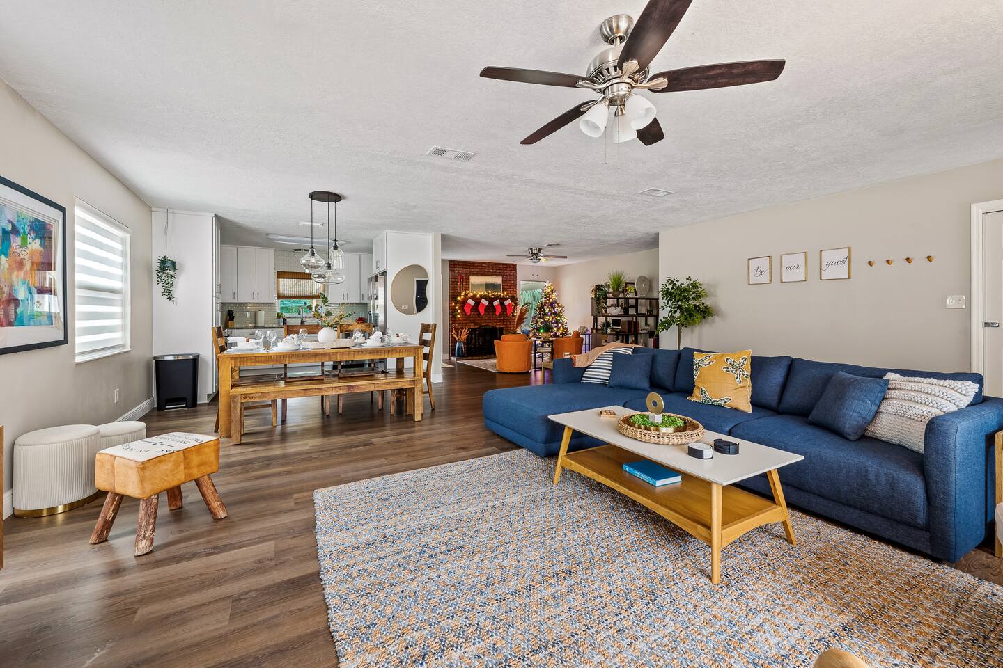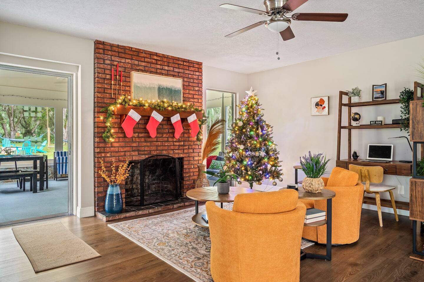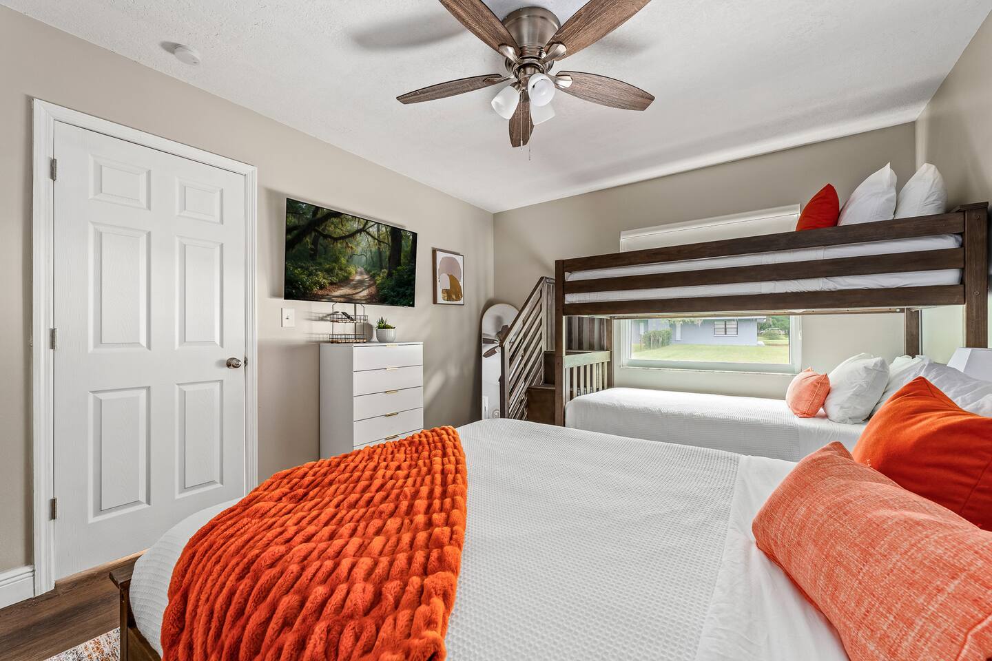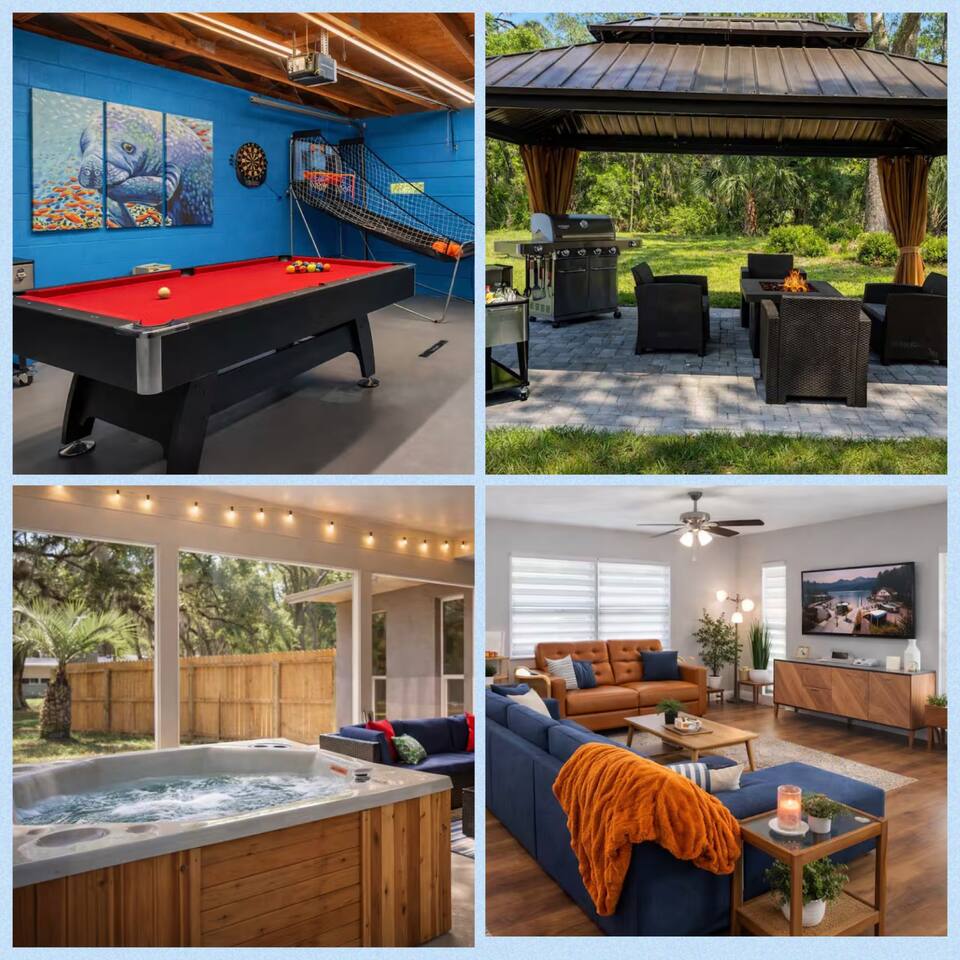 • 12 min toThree Sisters Springs, Hunter Springs & downtown Crystal River • Screened patio with relaxing hot tub • Fun game room w/ pool table, foosball & basketball arcade • HUGE backyard w/hammocks, gazebo, fire pit & outdoor games • EV charger, boat/RV parking & pet-friendly • Chef’s kitchen • 2 bedrooms • 2 bathrooms • King suite + Queen + Twin bunks • 50” Smart TVs in bedrooms + 65” in LR Everything you need for relaxation, play & adventure awaits!