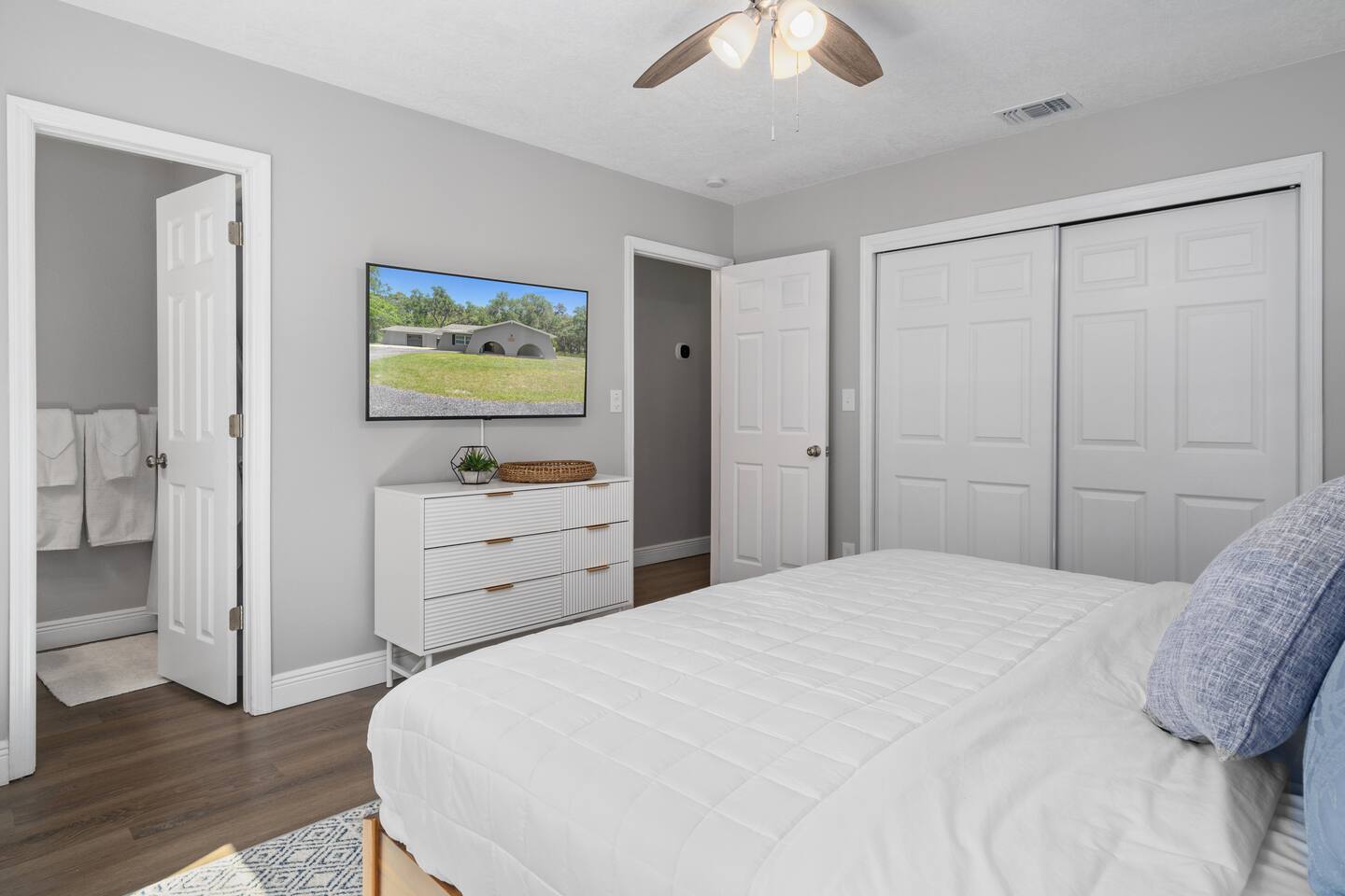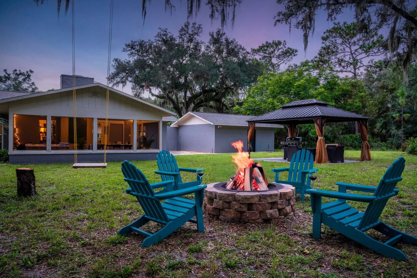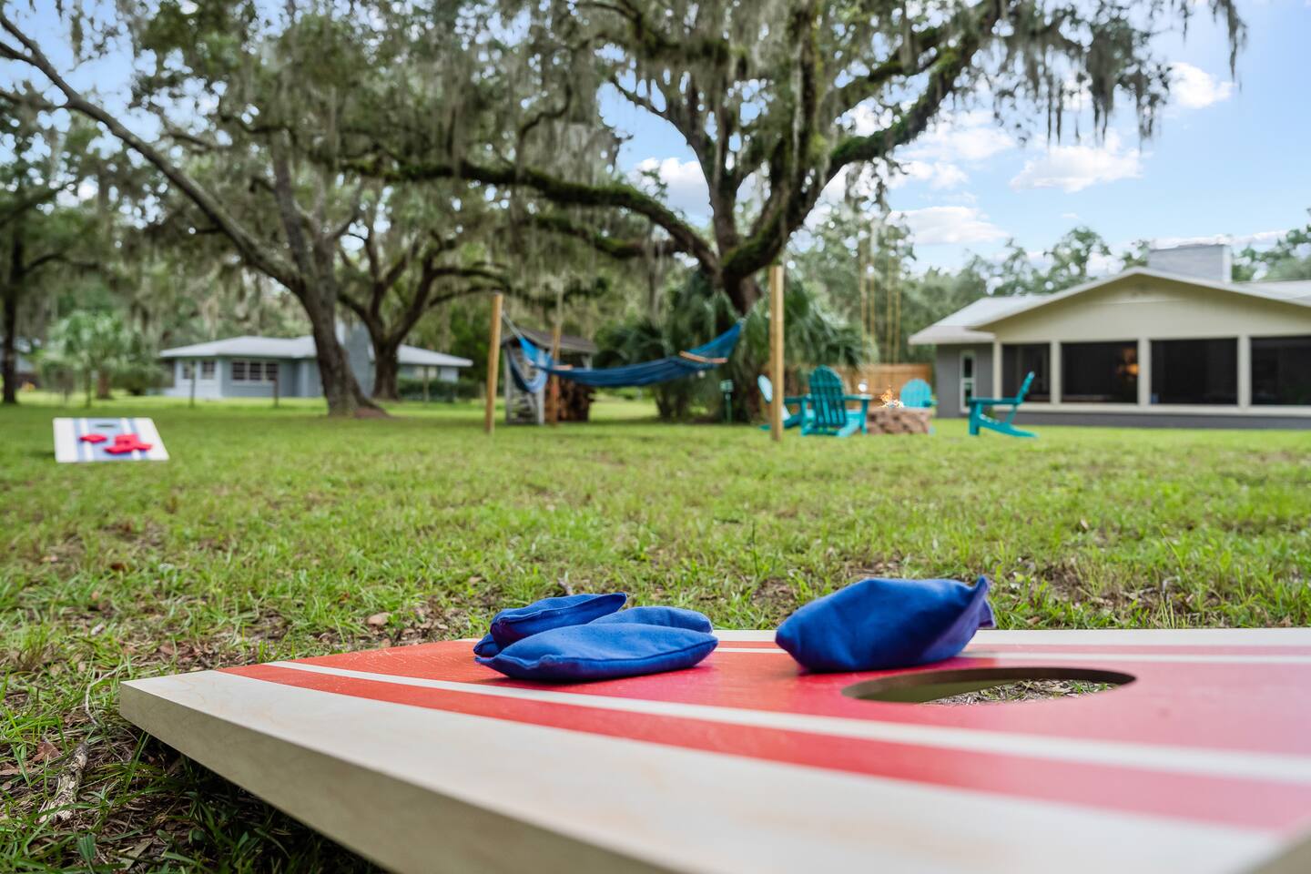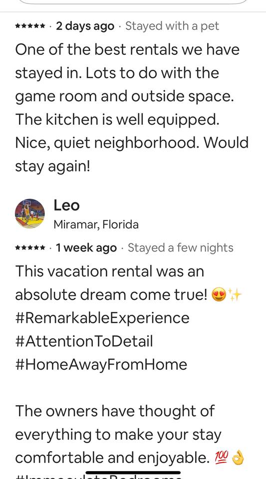Designed for your relaxation, Whispering Oaks Retreat is the perfect blend of comfort and adventure. Wake up beneath century-old oaks, sipping your morning coffee in the screened patio where you can lounge, dine outdoors, or slip into the bubbling hot tub. (If you’re an early riser—or a night owl—keep watch for deer, often spotted wandering quietly across the property at dawn or after dark). Spend the day your way—challenge each other in the game room with pool, foosball, arcade basketball, and a 65” TV, or head outside to hammocks, a swing, and yard games like volleyball, cornhole, and giant Jenga that spark laughter and connection. As evening falls, grill under the gazebo, roast s’mores by the fire pit, and gaze up at a blanket of stars. When it’s time to rest, retreat to the primary suite with a plush King bed, or settle into the guest room with a Queen and twin bunks—each room featuring blackout curtains for a restful night’s sleep. With boat ramps, springs, and manatee tours just minutes away, every day is a chance to explore and return to your private getaway. Save Whispering Oaks Retreat to your favorites and book your Crystal River escape today—your unforgettable getaway is waiting. **Optional add-ons; to further enhance your stay include half day stay, early check-in or late check-out (when available), EV charger activation, and a pet add-on for up to two dogs <65Lb—all available for a small charge.** Nearby Tourist Attractions: ➡️ 3 Sisters Spring (swim with Manatees)- 12 min ➡️ King’s bay-12 min ➡️Hunters Park (Swimming & kayak)- 11 min ➡️Fort Island Trail (Scalloping)- 20 min ➡️Homosassa Springs Wildlife Discover endangered animals including manatees all year long- 24 min ➡️Crystal River National Wildlife Refuge- 14 min ➡️Church house Hammock Trail-Boardwalk trail in the Crystal River Preserve featuring scenic marshes & native wildlife- 8 min ➡️Rainbow Springs-tubing down the river, kayaks, and much more- 28 min The Property INDOOR: ➡️2 Large bedrooms w/ TVs ➡️Gourmet Kitchen ➡️Fully Equipped Kitchen. ➡️ Washer & Dryer ➡️ 5G WIFI ➡️2 Bathrooms ➡️Spacious Living Room ➡️Inside/Outside Dining ➡️Designated Work Station GAME ROOM: ➡️Pool Table ➡️Foosball ➡️Dart Board ➡️ 65" TV ➡️ Kids Table ➡️Arcade/Basketball Game ➡️Table Board Games ➡️Books & Toys OUTDOOR: ➡️Propane Gas Grill ➡️Hot Tub ➡️ Outdoor Shower ➡️Corn Hole Games ➡️ Hammocks ➡️Volleyball ➡️Huge Backyard ➡️Fire Pit ➡️Fire (Gas) Table ➡️Outdoor Furniture ➡️Giant Jenga ➡️Giant Connect Four ➡️And More... Whether you’re looking for outdoor activities, backyard relaxation, or a break from the daily grind, everything is easily accessible.